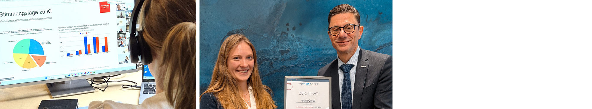 Aus der Konzernzentrale hatte RWTÜV Kollegin Anika Corte teilgenommen. Sie erhielt ihr Zertifikat Anfang Dezember persönlich in der ansonsten remote veranstalteten Abschlussrunde mit den stolzen Absolventen. Thomas Biedermann, CEO von RWTÜV und Volker Höhnisch, Vorstandsvorsitzender von TÜV Thüringen, gratulierten und freuten sich über das erweiterte Netzwerk und die erzielten Ergebnisse, die in vier Pitches online präsentiert wurden. Volker Höhnisch bewertete dieses Pilotprojekt: „Die gemeinsame Veranstaltung von Mitarbeiterinnen und Mitarbeitern aus beiden Unternehmensgruppen war ein voller Erfolg und macht Mut, weitere gemeinsame Projekte zu starten. Vielen Dank für die Organisation, Durchführung und aktive Mitarbeit bei allen Beteiligten!“